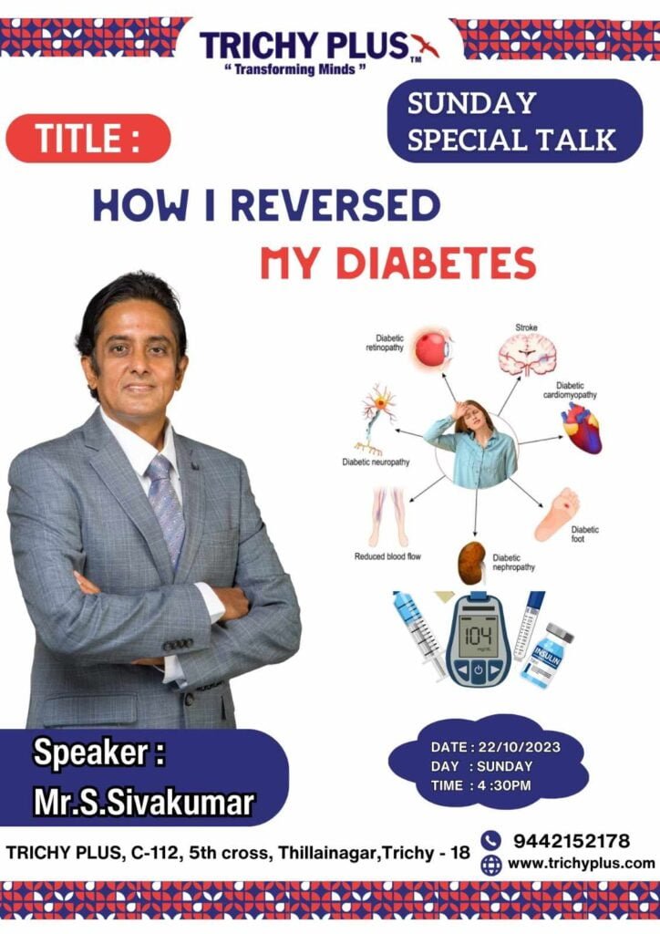Don’t miss this Sunday’s special talk featuring our CEO, Mr. Sivakumar, as he takes us on a remarkable journey of how he successfully reversed his diabetes.
